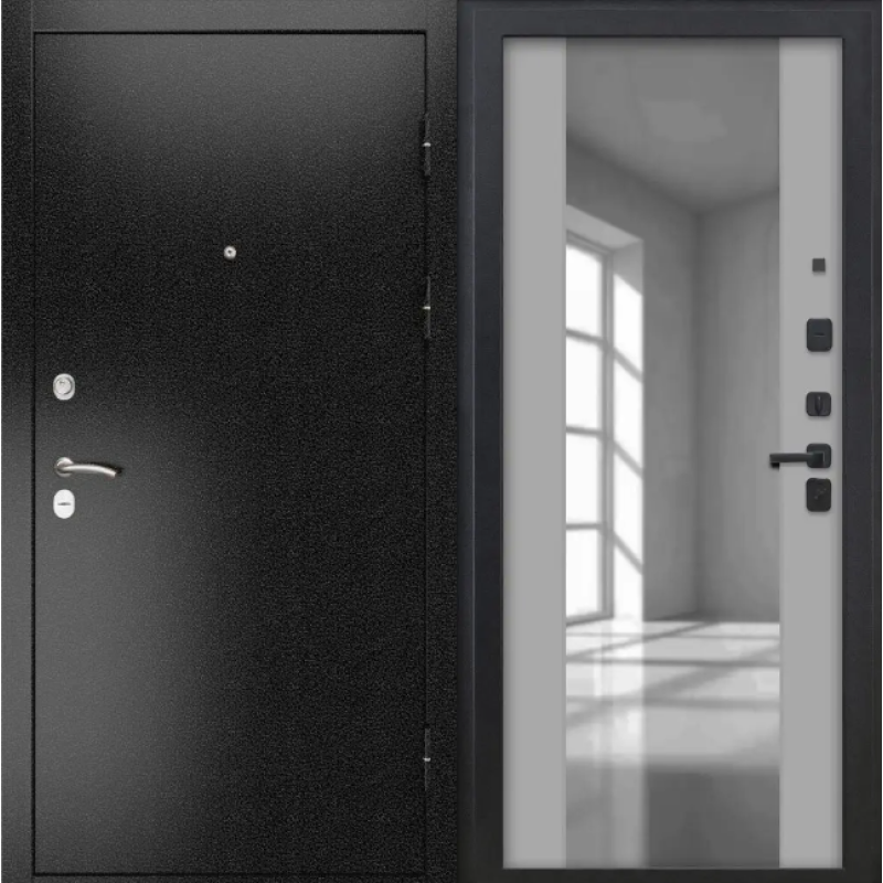 2 противосъёмных штыря: вмонтированы в полотно с петлевого торца, на случай если злоумышленники срежут петли, дверь не откроется, а провиснет в коробе.