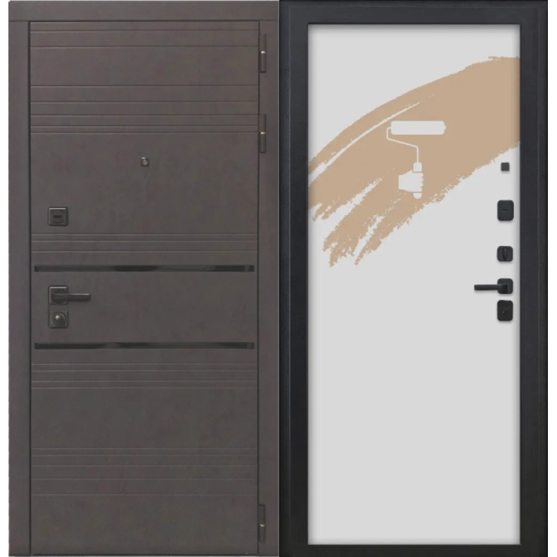 Внешняя отделка: МДФ панель 10мм, цвет бетон графит, + вставки декоративные черные (пластик). + Декоративные МДФ наличники.
