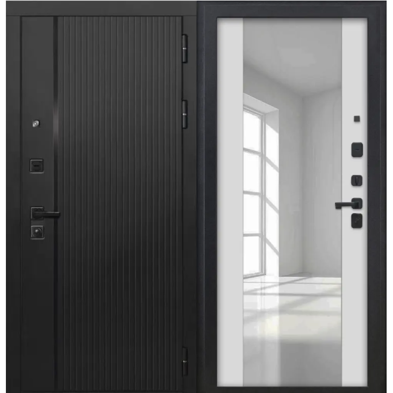 Внешняя отделка: МДФ панель 10мм, цвет черный кварц, + вставка вертикальная - черный пластик, фрезеровка вертикальная, в цвет. + декоративные МДФ наличники.