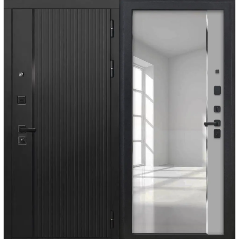 Внешняя отделка: МДФ панель 10мм, цвет черный кварц, + вставка вертикальная - черный пластик, фрезеровка вертикальная, в цвет. + декоративные МДФ наличники.