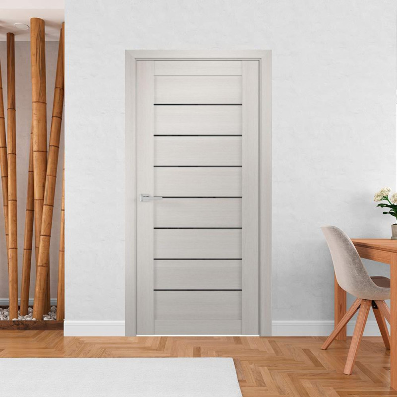 Межкомнатная дверь ЛУ-7 Белёный дуб (стекло лакобель черный)