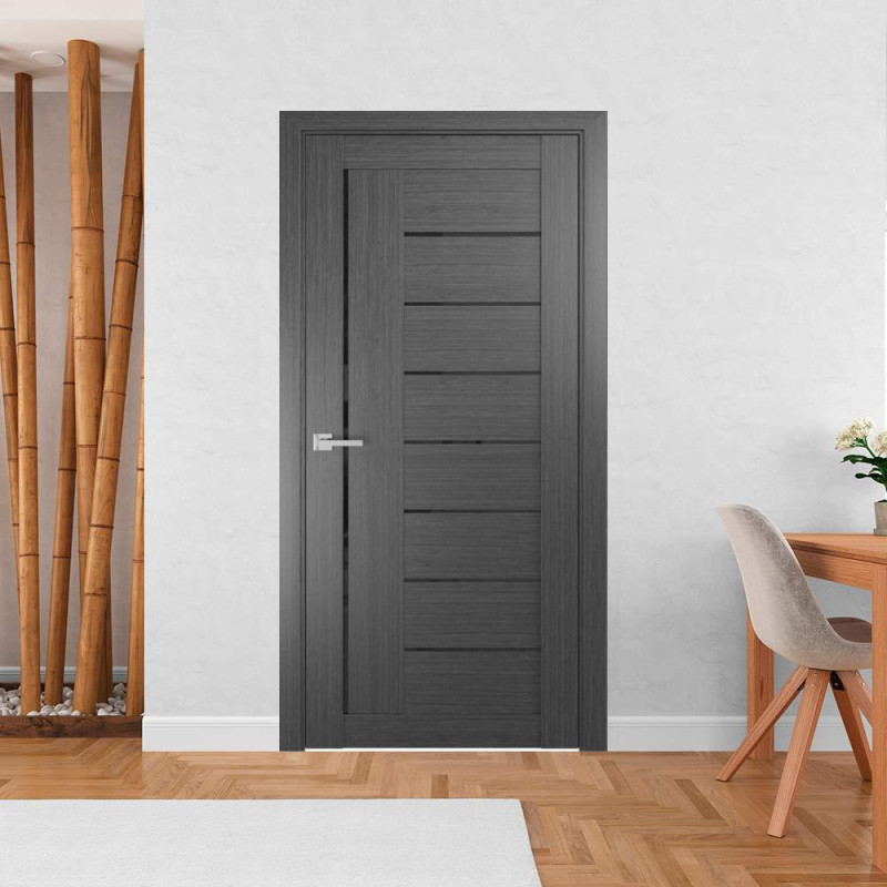 Межкомнатная дверь ЛУ-17 Серая (стекло лакобель черный)