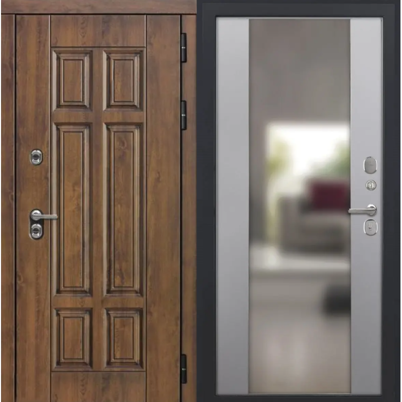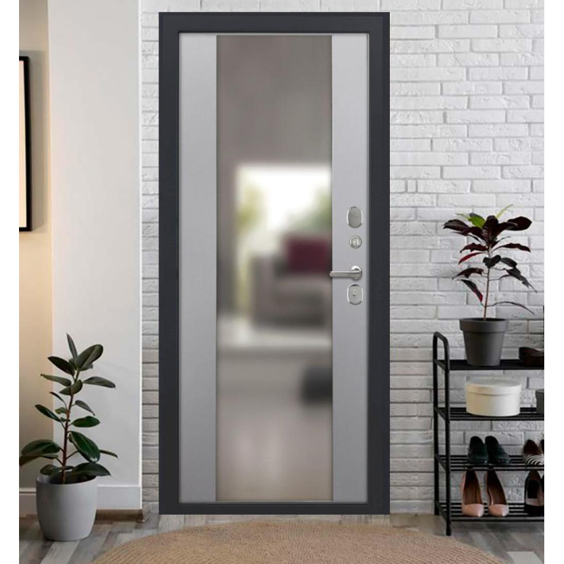 Входная дверь Luxor - Квадро - Алиса (16мм, ПВХ Софт грей, зеркало)