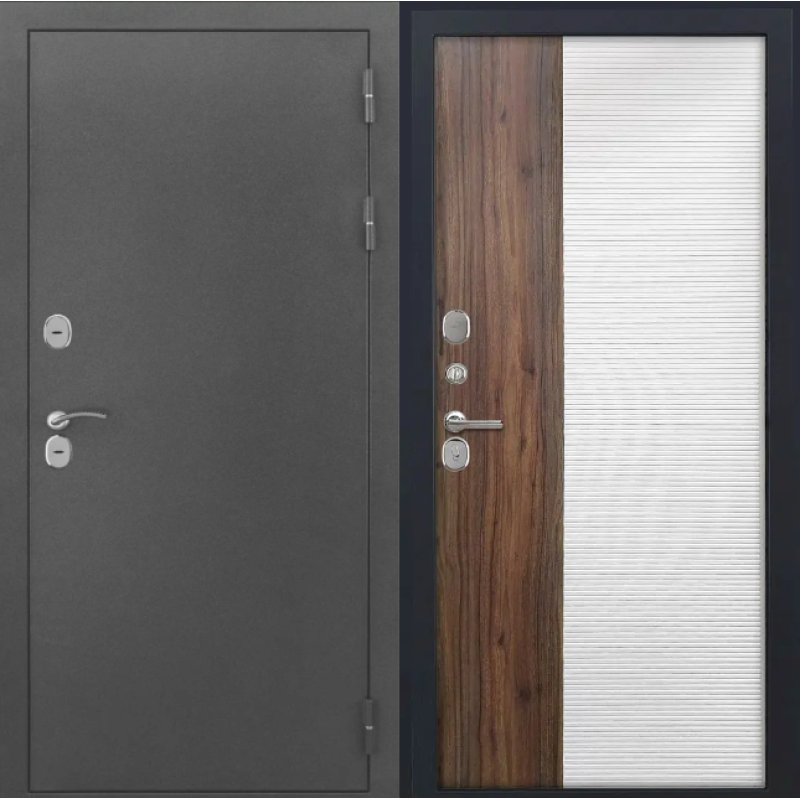 Терморазрыв: между наружной и внутренней сторонами двери обеспечивается термовставкой имеющей низкий коэффициент теплопроводности, расположенным по всему периметру полотна и короба. Наличие термовставки в дверной коробке и дверном проеме полностью исключает проблему "мостиков холода"! Толщина терморазрыва - 7 мм.
